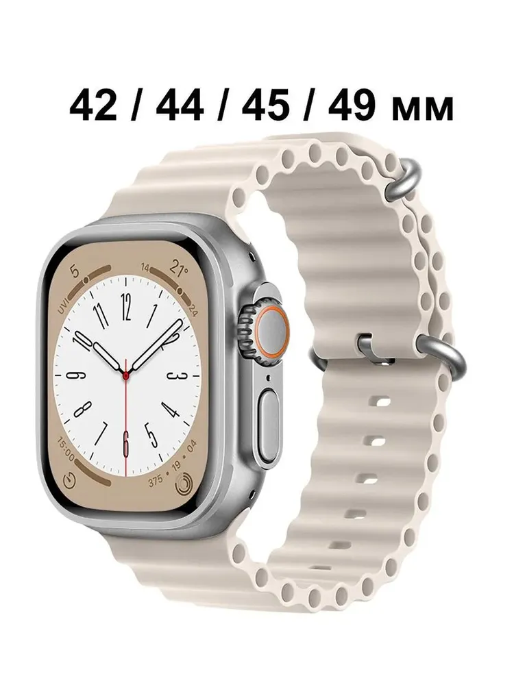 — ремешок «Ocean Band» для Apple Watch (42/44/45/49 мм), выполненный из прочного и эластичного материала, который обеспечивает комфорт и надёжную фиксацию часов на запястье. Идеален для активного образа жизни, спорта и повседневного использования.